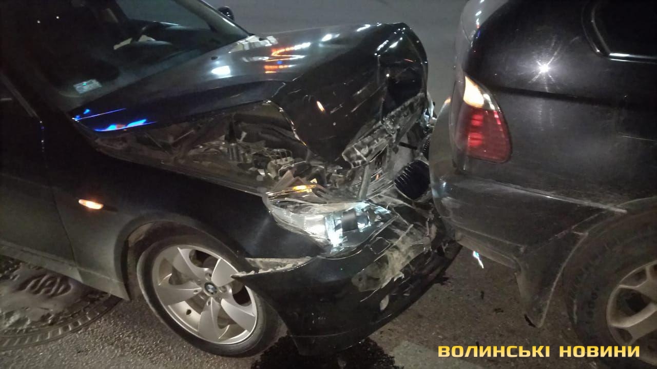 Як повідомили Інформаційному агентству Волинські Новини очевидці аварії, водій автомобіля BMW X5 почав зупинку на червоне світло світлофора, коли у нього на великій швидкості в'їхав легковик BMW. Після удару обидва автомобілі змістилися з місця удару на понад 10 метрів. На щастя на пішохідному переході у той момент нікого не було, відтак постраждалих у ДТП немає.