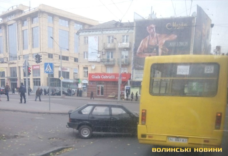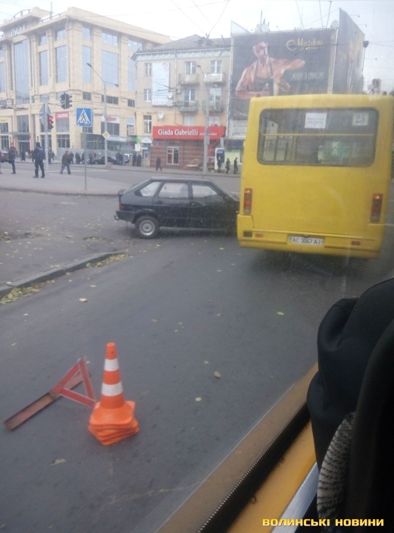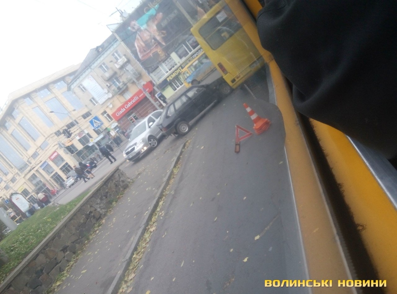 Дорожньо-транспортна пригода трапилася сьогодні близько 16:00 у центрі Луцька. Зіткнулися маршрутне таксі та легковик на перехресті вулиці Паркової та проспекту Волі.