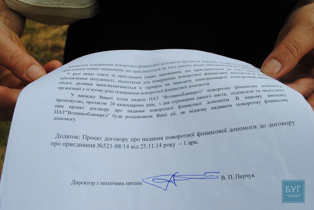 ПАТ “Волиньобленерго” запросило за відновлення постачання електроенергії 115 тисяч гривен “спонсорської допомоги”, яку обіцяли повернути протягом 5-ти років. Окрім того, люди із власних кишень мають сплатити 170 тисяч гривень за виготовлення кошторису, та 6 тисяч за складання проекту енергопостачання.“Ви складіть ці суми разом і скажіть – чи можуть пенсіонери, інваліди, одинокі матері та сім’ї, у яких чоловіки служать на сході України сплатити ці кошти? нам життя не вистачить, щоб заробити такі суми!”, – каже пані Ганна.