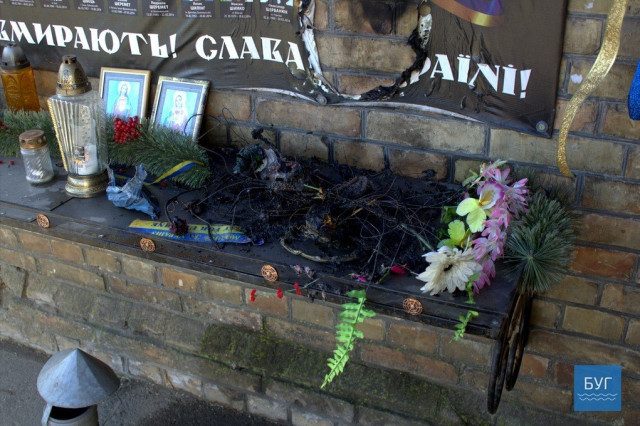 У Володимирі-Волинському невідомі підпалили стенд пам’яті Небесної Сотні