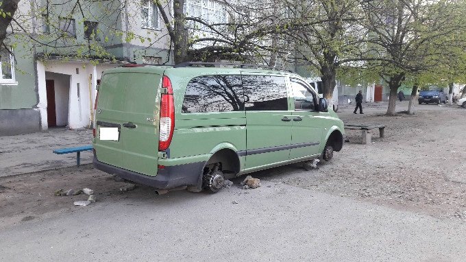 Минулої доби «мисливці за колесами» повністю «роззули» «Мерседеса Віто», який належить 37–річній жительці багатоповерхівки на вулиці Ковельській. Жінка припаркувала свого залізного коня у повному спорядженні, а вранці – він уже був «босий».