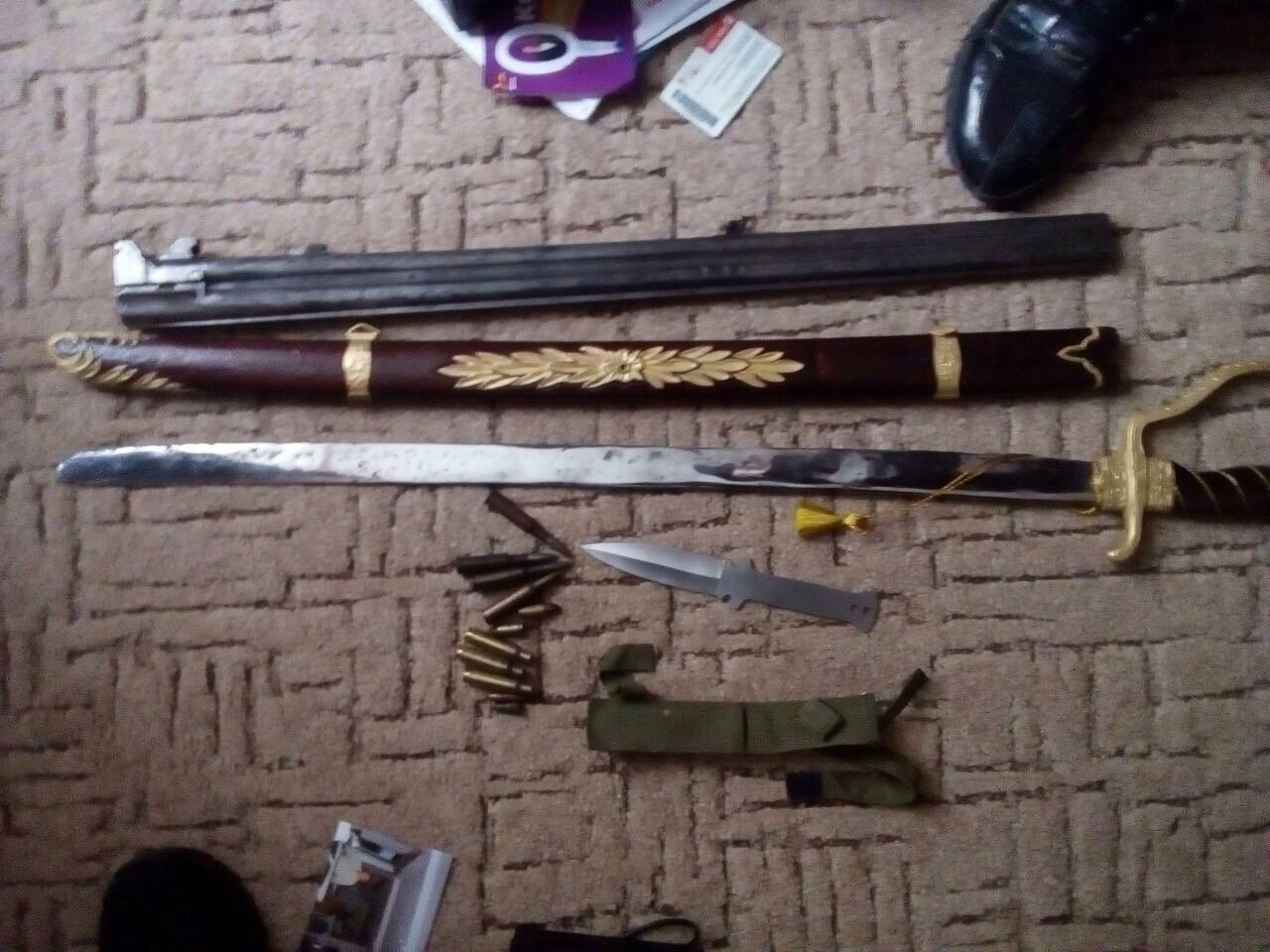 У ході обшуку правоохоронці виявили 9,5 кг рослин коноплі, 0,5 кг висушених рослин снотворного маку, 6 патронів калібрів 7,62 мм та 9 мм., 4 металевих банки із вмістом пороху та шаблю.