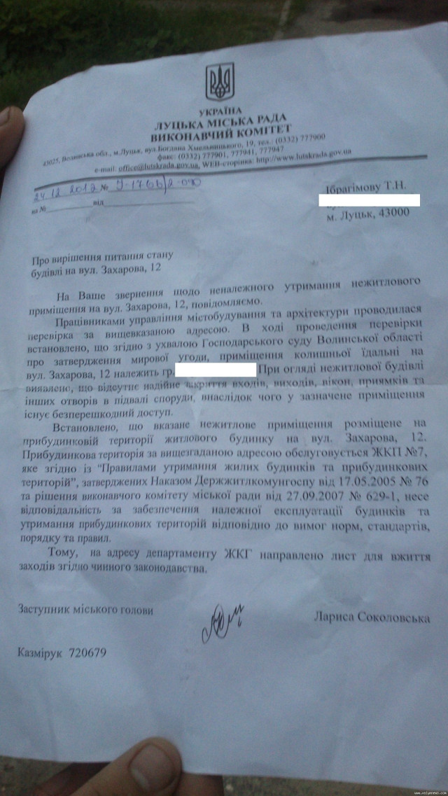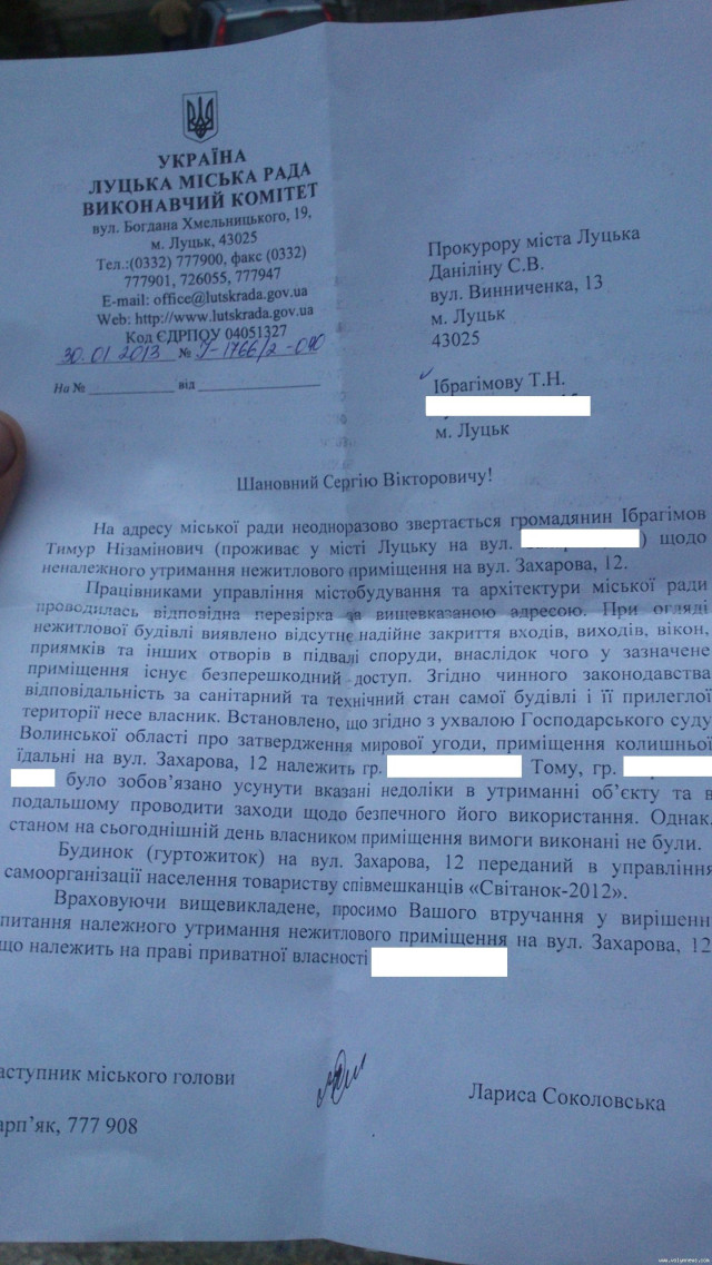 Тімур Ібрагімов надав «Волинським новинам» і копії документів, які отримав на свої звернення до СЕС та Луцької міськради.