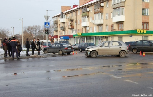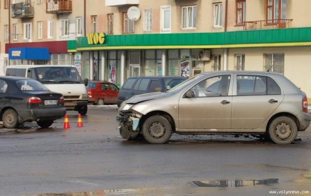 На Київському майдані в Луцьку близько 14:30 пообіді трапилась аварія – не розминулось дві легкові автівки.