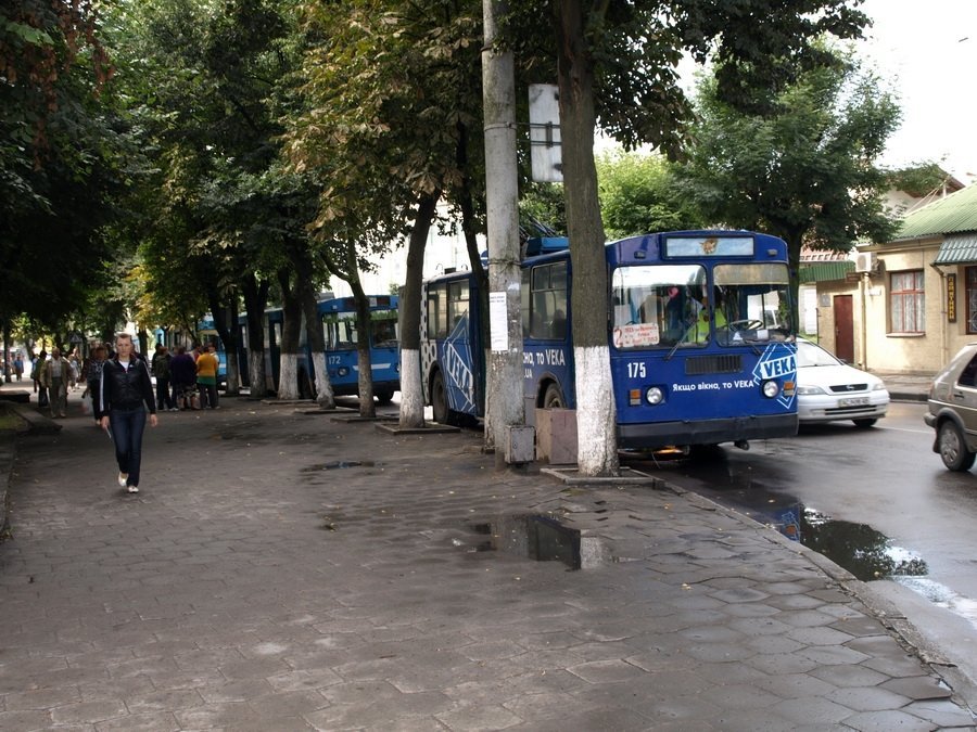 А оскільки під час ремонту відключили електропостачання лінії, то утворився другий корок із рогатих на зупинці біля Центрального універмагу.