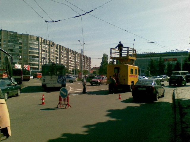 Як наслідок, на транспортній розв’язці вимушені були «скласти роги» чотири тролейбуса, які суттєво ускладнили рух.