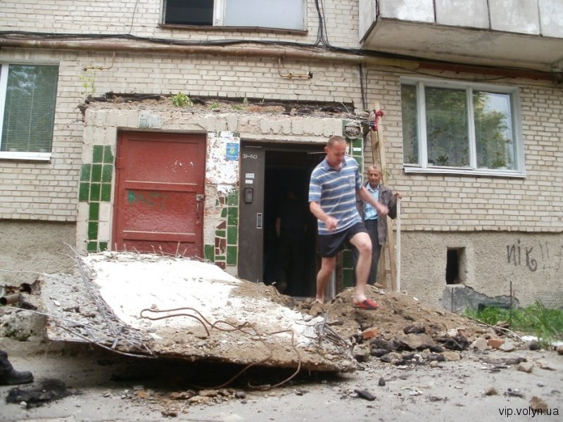 Надзвичайна подія трапилась неподалік мого під'їзду. Це ж чекає і дашок над моїм. Вже мабуть зо два роки подаємо заявки на ремонт. Реакція нульова. Люди добрі, до тих пір поки ми не усвідомимо, що ми люди, а не бидло, до тих пір будемо знищувати самі себе. Про Романюка, про владу - це все вірно, та давайте все ж конкретизувати. Є там така собі Зенівна, керує своїми алкашиками, їм копійку на 100 грам, а собі все інше. Це типовий совковий чиновник, хамка, безвідповідальна, хабарниця!!!