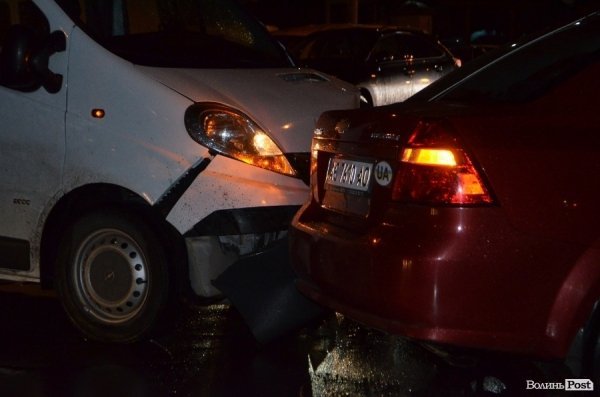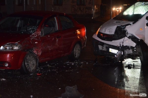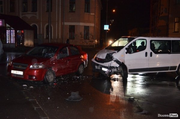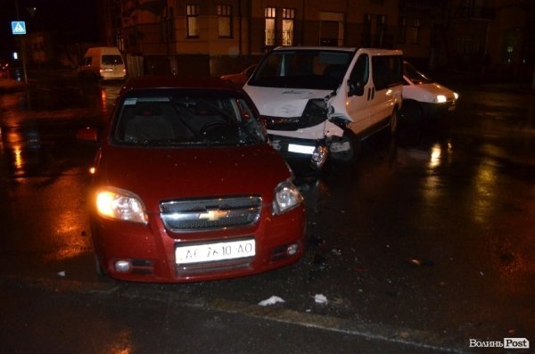 Як стверджують свідки, автомобіль Chevrolet Aveo рухався із вулиці Шевченка та зіткнувся із мікроавтобусом Opel Vivaro, який повертав на вулицю Богдана Хмельницького із проспекту Волі. В обох автомобілів – пошкодження кузовів. Так, у Chevrolet – побитий лівий бік та фара. Мікроавтобус також пом’ятий з лівого боку, побита фара та «вивернуте» колесо, - інформує ВолиньPost.