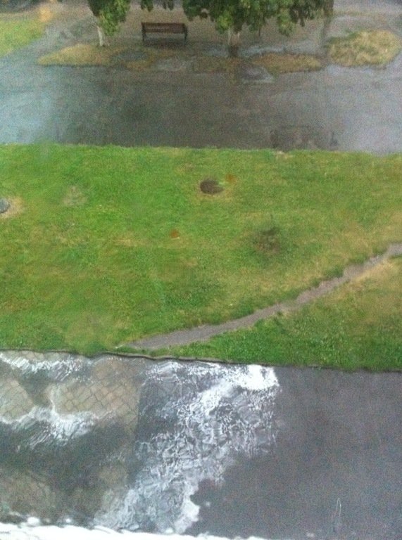 Fenmix: триздець, тут ніби грім біля будинку вдарив на 40вому чи мені так здалося. І ще, раніше я такого не бачив, завжди затоплювало тільки дорогу.