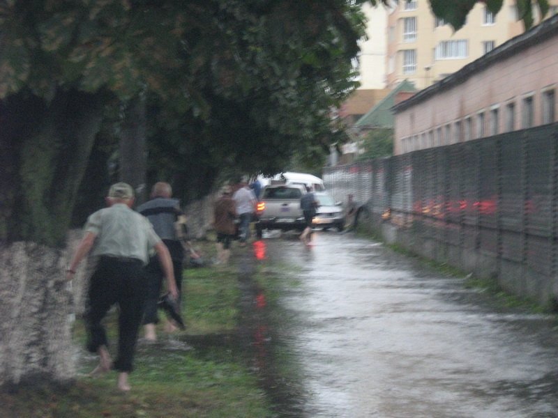Я сам думав не дойду по Ветеранів біля 10школи було вище як вищеколін.В підвал будинку хлинули швилі і звтопило підвал дверного проєму не було видно.Все це як у фільмі було.В нас в будинку ливневу каналізацію запхали в господарско-побутову.То гі...но з водою зривало бетонні кришки цих колодязів.