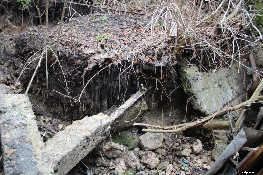 За словами мешканки будинку, обвал спричинений тим, що порушили норми забудови по ту сторону стіни: «Це підпірна стіна від Волинського музею ікони. Там, коли робили ремонт, залишили кусок місця і поставили гаражі. Збільшився натиск на землю і вона поповзла. Два роки уже тече. І поступово тріщини, тріщини, тріщини… камні відвалюються, а тепер уже все відвалилося».