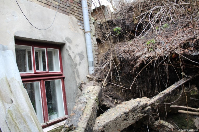 Підпірна стіна, збудована ще на початку минулого століття, служила захистом для будинку від зсувів ґрунту, зараз же споруда сама загрожує здоров’ ю та життю мешканців двохповерхівки.