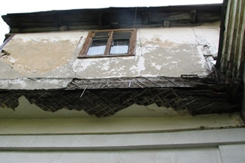 «Ми поставили нові пластикові вікна два роки тому, а вже стіна так тріскає і дах хилиться, що скоро, певно, взагалі відкрити буде не можливо», – розповідає мешканка квартири №12 Леся, яка проживає у ветхому будинку зі своїм чоловіком та трирічним сином.