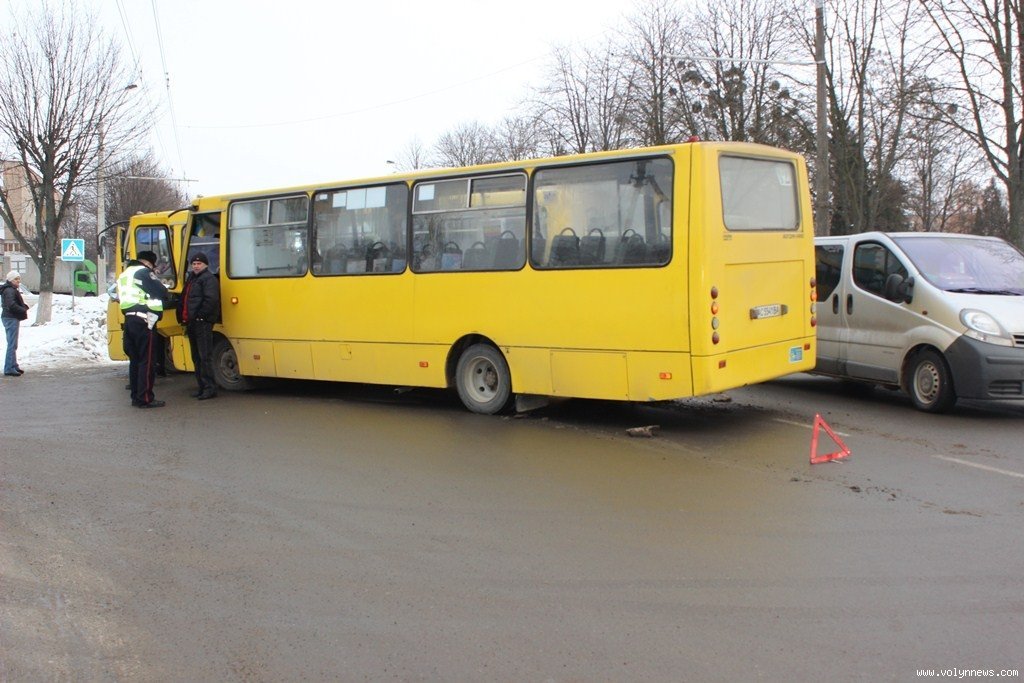 Маршрутне таксі №12 врізалося у лівий бік іншої маршрутки №18. Варто зазначити, що за схемою маршруту №18 на цій ділянці вулиці Рівненської водій має повертати транспортний засіб, аби поїхати далі вулицею Мазепи.