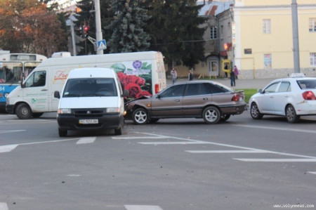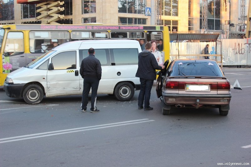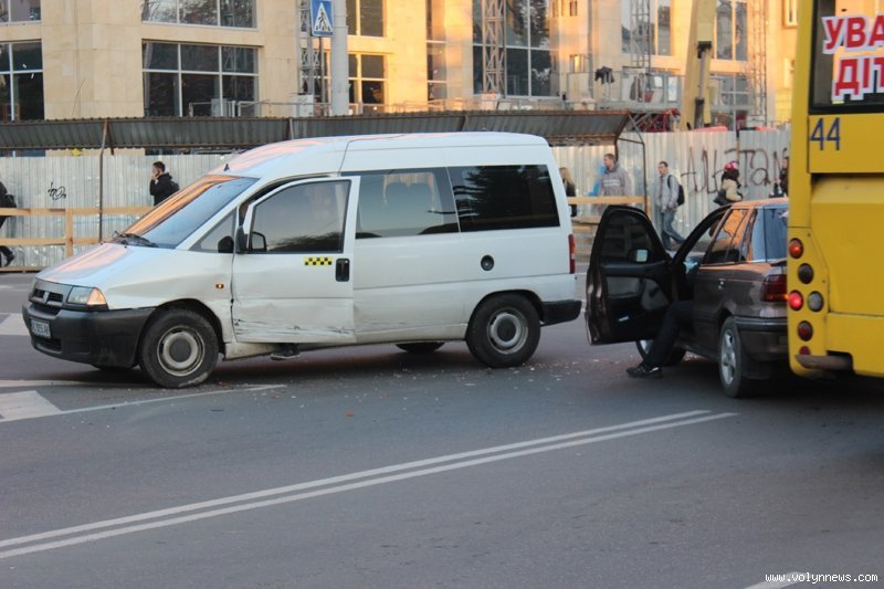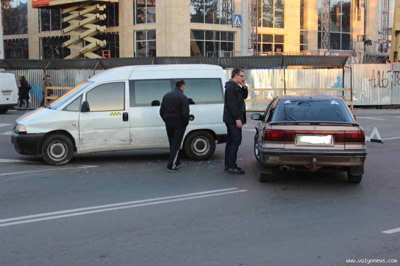 Дорожньо-транспортна пригода трапилася в обласному центрі Волині поблизу ЦУМу: таксі не розминулося з іномаркою.