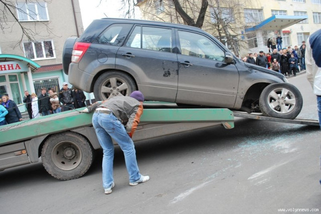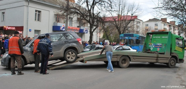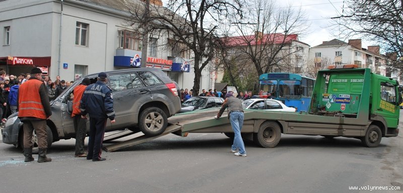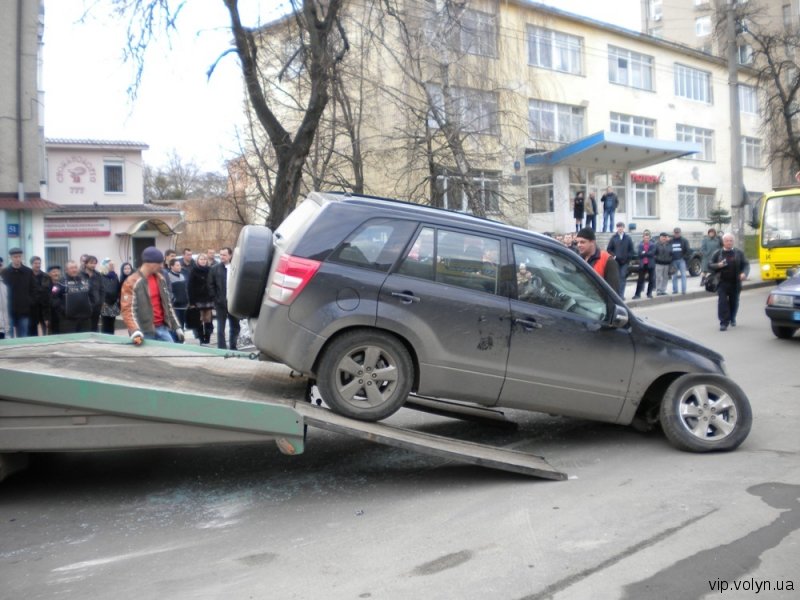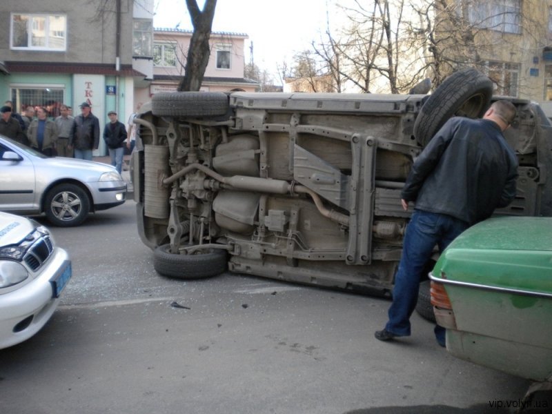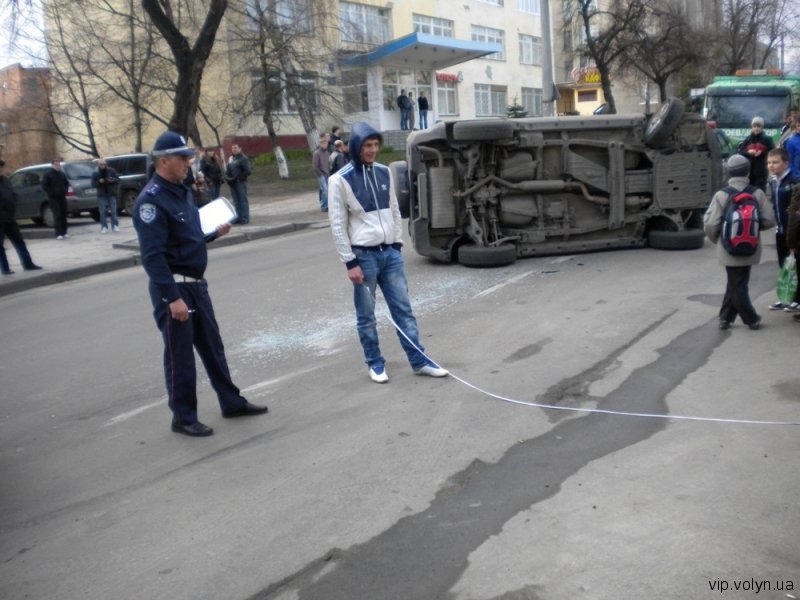 У центрі Луцька на вулиці Винниченка близько о пів на шосту вечора 14 квітня джип «Сузукі» перекинувся та спричинив півторагодинний затор.