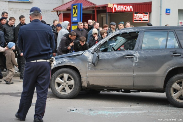 Аварія сталася біля бізнес-центру «Директорія». Як розповідають свідки, чорний джип, рухаючись на великій швидкості вузькою вулицею, зачепив легкову машину «Фольксваген», що була припаркована на стоянці біля бару «Максим».