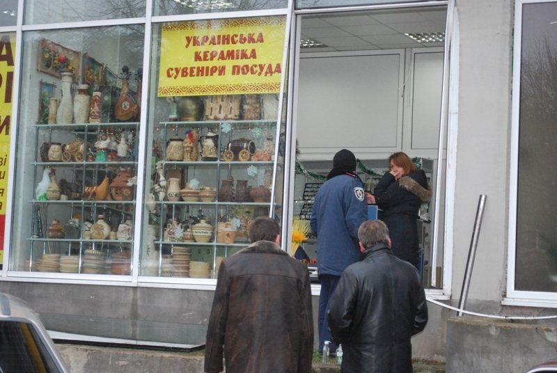 Був там беркут, бо то кримінад. ще були слідаки з горвідділу. Мазали вітрину, шукали відбитки. думаю, нальотчики працювали в перчатках. профі. Надививлися фільмів і чистять магащини. Скоро до банків доберуться