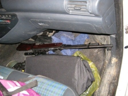 Під час огляду в салоні було виявлено та вилучено пневматичну гвинтівку з оптичним прицілом та набої до неї у кількості 200 штук калібром 5,5міліметра. Наразі триває експертна оцінка зброї.