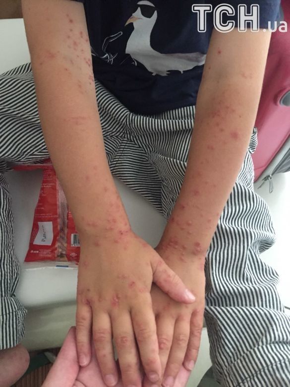 "Мій чоловік зі старшою дочкою вже відлетіли, а я зі своїм чотирирічним сином залишилася. І ось ми без їжі і без води весь день сидимо в лікарні всі коростою вкриті. Я прошу їх взяти аналізи, але поки теж безрезультатно, тому що, сьогодні це зробити неможливо. Ми сидимо тут і не виходимо з лікарні, нам навіть нема куди йти", – додає Маріанна.