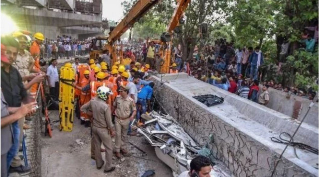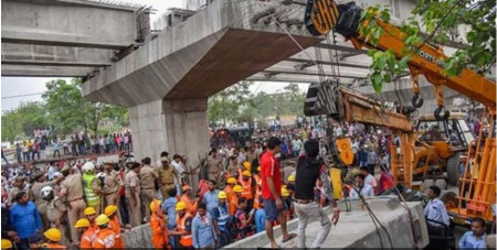 В індійському місті Варанасі дві опори одного з прольотів шляхопроводу зруйнувалися. Відтак, величезна бетонна плита впала на людей, легкові автомобілі та автобус.