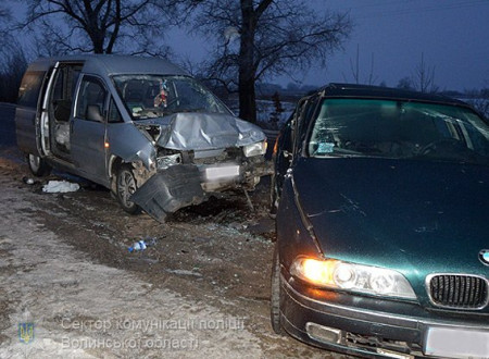 «BMW» врізалося у автомобіль «Peugeot Expert» на автодорозі поблизу села Стара Лішня Іваничівського району 5 лютого.