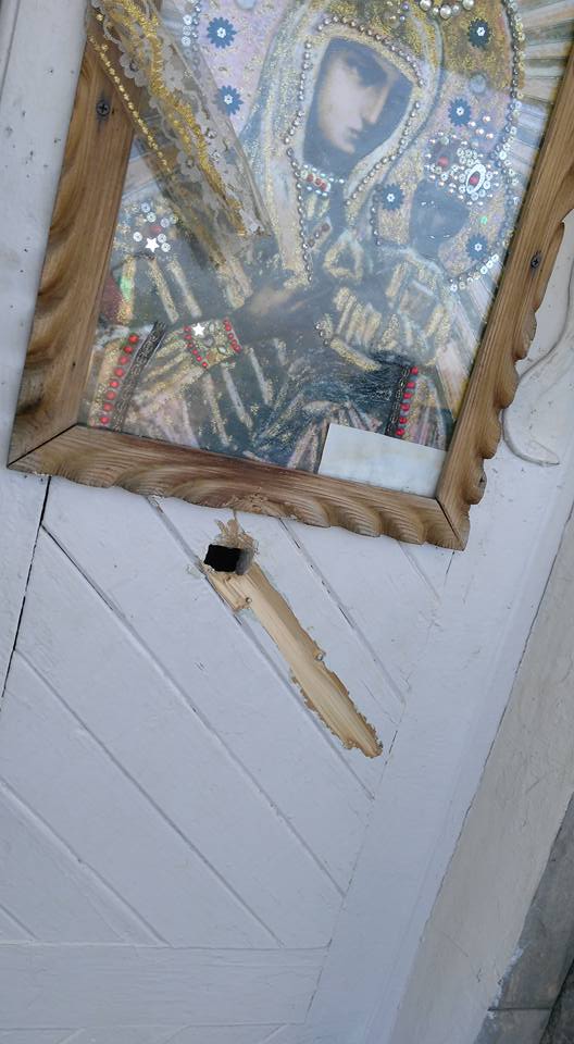 Щоб потрапити усередину, невідомі розбили вікна, проте металеві грати завадили пробратися в капличку. Злодії також робили спроби зламати замок у дверях.