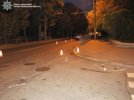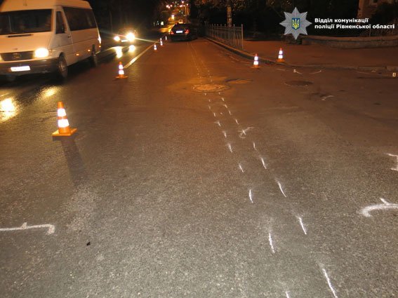 Близько о пів на п’яту ранку до поліції надійшло повідомлення, що 33-річний водій «Мercedes Benz S500», житель Луцька, рухаючись у напрямку центру Рівного, допустив наїзд на 18-річну рівнянку, яка, зі слів керманича, раптово почала перетинати нерегульований пішохідний перехід.