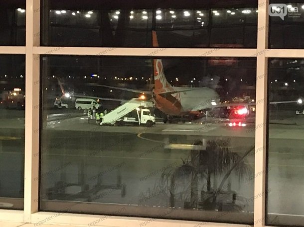 За інформацією відомства, «після приземлення борту в результаті витоку масла з гідравлічної системи загорілася шина шасі лайнера, який прилетів із Запоріжжя».