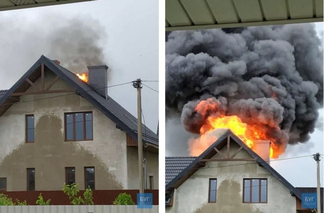 Від удару блискавки у Нововолинську загорівся будинок. Відео