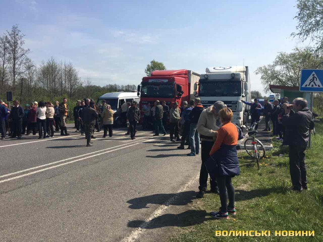 Про це у коментарі Інформаційному агентству Волинські Новини з місця перекриття повідомив керівник фракції УКРОП у Поворській ОТГ Сергій Ткачук.