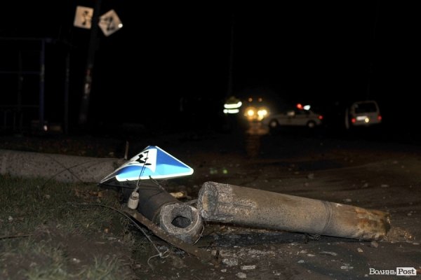 Чергова дорожньо-транспортна пригода трапилася в Луцьку. На вулиці Чернишевського автівка розтрощила одну з електроопор, лишивши вулицю без світла.
