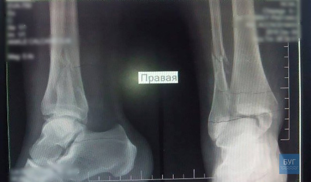 В травматологічному відділенні жінці встановили діагноз: перелом кісточок правої гомілки зі зміщенням.У одній палаті з Світланою Чепего на лікарняному ліжку – бабця, якій 81 рік. Крім поламаної ноги, розповідає, дошкуляє і травмована під час падіння рука. Причина травматизму та ж.