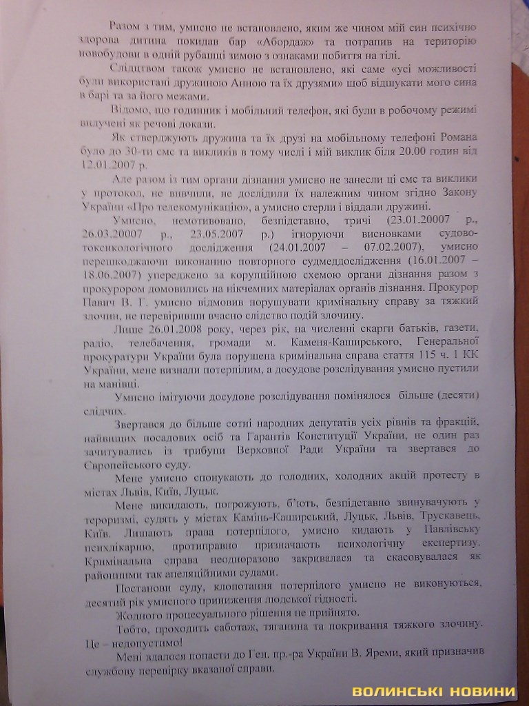 Мешканець Каменя-Каширського Володимир Богута продовжує вимагати об’єктивного розслідування загибелі свого сина і цього разу він звернувся про допомогу до депутатів райради та громадськості. Адже справа тягнеться уже майже десять років, і дотепер згорьований батько не вірить у чесність розслідування, яке, до слова, поновили.