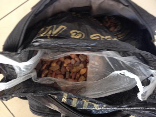 Під час перевірки в салоні транспортного засобу знайшли пакунок з майже 3 кілограмами «сонячного каміння», а поміж обладнання приміщень пункту пропуску - сумку з 7,6 кілограмами необробленого бурштину.