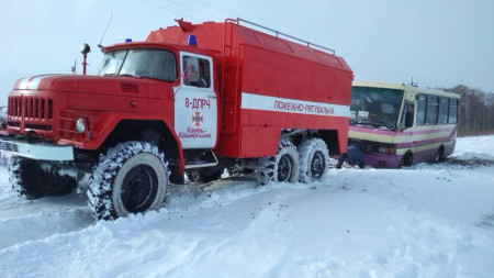 На Волині у снігових заметах застрягли швидка і рейсовий автобус
