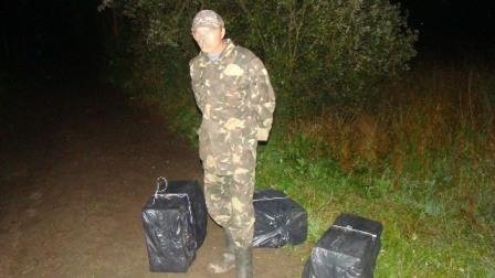 За кілька хвилин прикордонники затримали порушника, який мав при собі 3 ящики цигарок.