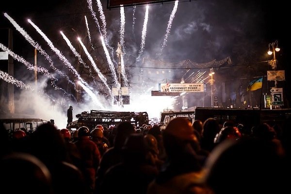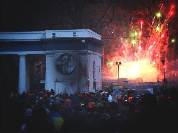 Спалахи від феєрверків, кинутих у силовиків. Фото невідомого автора