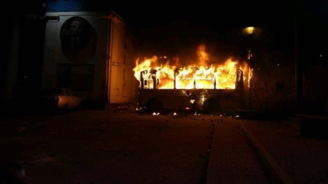Під вечір понеділка наново спалахнули автобуси силовиків. Фото AFP