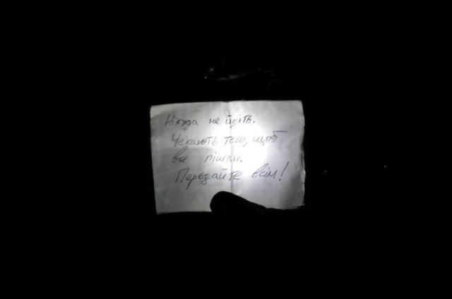 Це вже Львів. Записка від заблокованих військових на Стрийській: "Нікуда не йдіть. Чекають того, щоб ви пішли. Передайте всім!". Фото невідомого автора