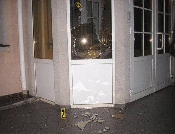 Правоохоронці встановили, що в результаті вибуху уламками пошкоджено чотири вікна на першому поверсі і два - на другому у вигляді отворів діаметром до одного сантиметра. На покритті плитки тротуару біля входу до приміщення прокуратури виявили воронку діаметром 8-9 сантиметрів і глибиною майже 9 міліметрів.