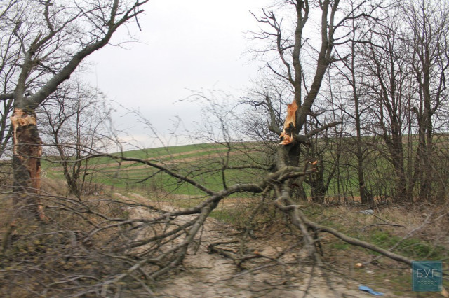 Фото "БУГ": 13 квітня сильний поривчастий вітер із дощем у Володимир-Волинському районі повикорчовував дерева, поруйнував дахи та пошкодив лінії електропередач