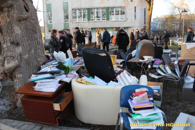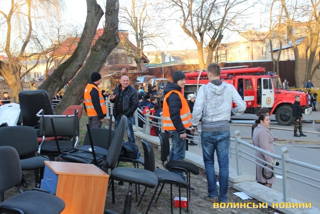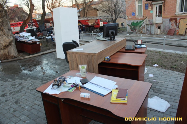 Рятувати речі, які мають цінність, із приміщення, зголосилися активісти Автомайдану та «Правого сектора». Як розповів координатор Автомайдану Сергій Поха, пожежу він зауважив із вікна Центру надання адміністративних послуг, після чого зателефонував у штаб, звідки автомайданівці та представники «Правого сектора» виїхали, щоб допомогти виносити меблі з будинку. Рятували комп’ютери, принтери, документи, усе, що мало цінність. Також активісти обгородили територію задля безпеки лучан, та щоб перехожі не заважали працювати рятівникам.
