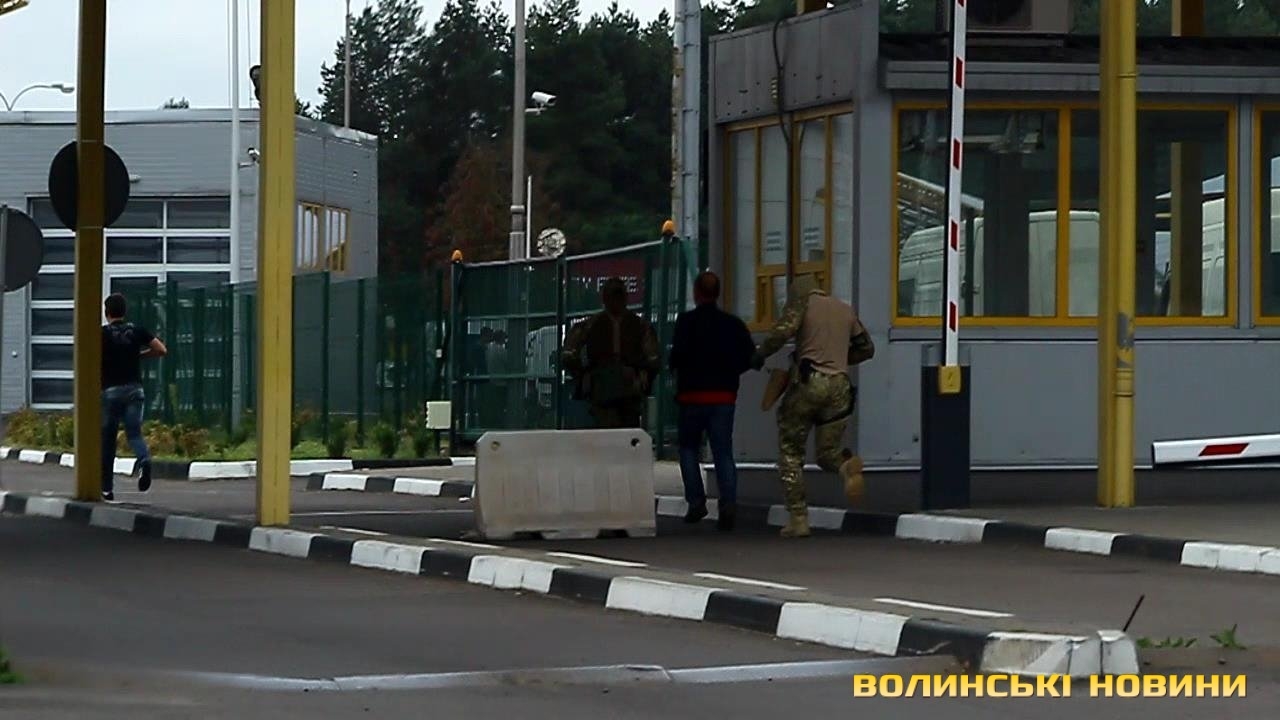 Спецоперація із затримання розпочалась о 12:50. Чоловіки зі зброєю та в балаклавах зупинились поблизу в’їзду на закриту територію і швидко побігли до митного посту №2.