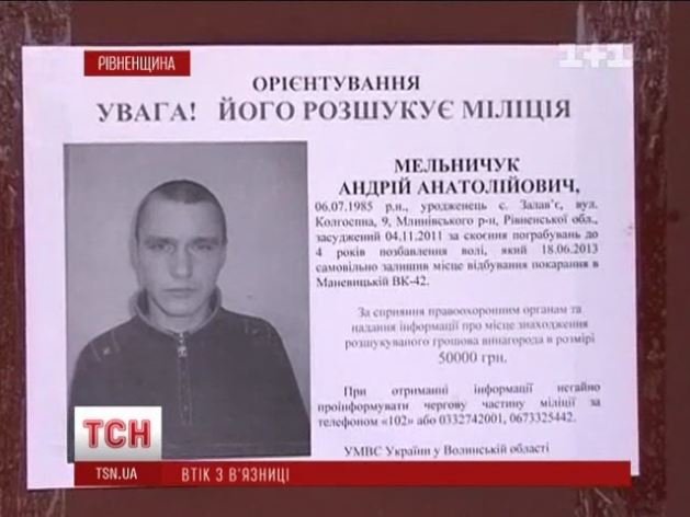 За ґрати 27-річний Андрій Мельничук потрапив через крадіжку колеса від літака на місцевому аеродромі. До звільнення лишалося три місяці. Тепер сотні військових прочісують обидві області, а міліція з'їхалася до села, де мешкав хлопець.