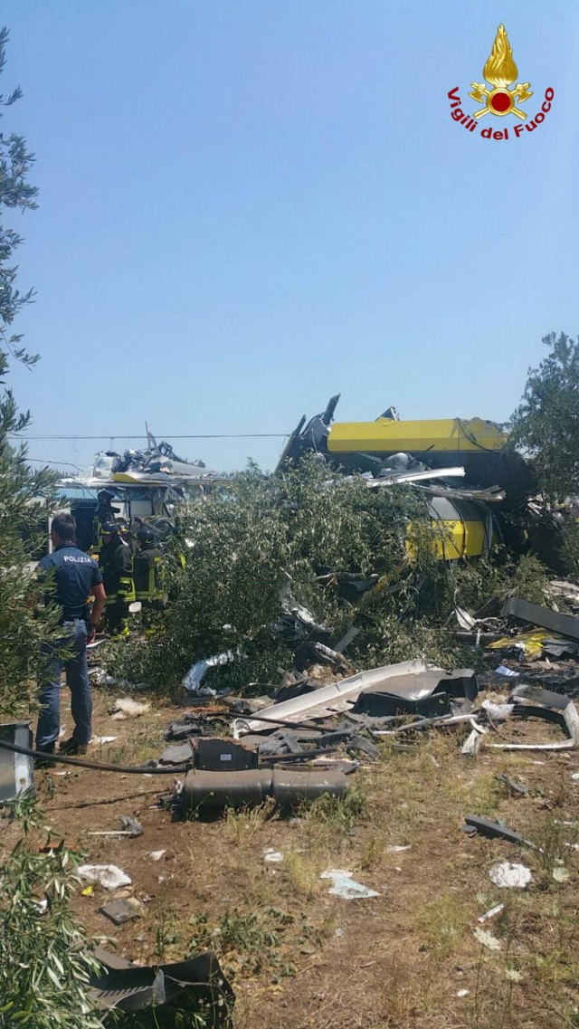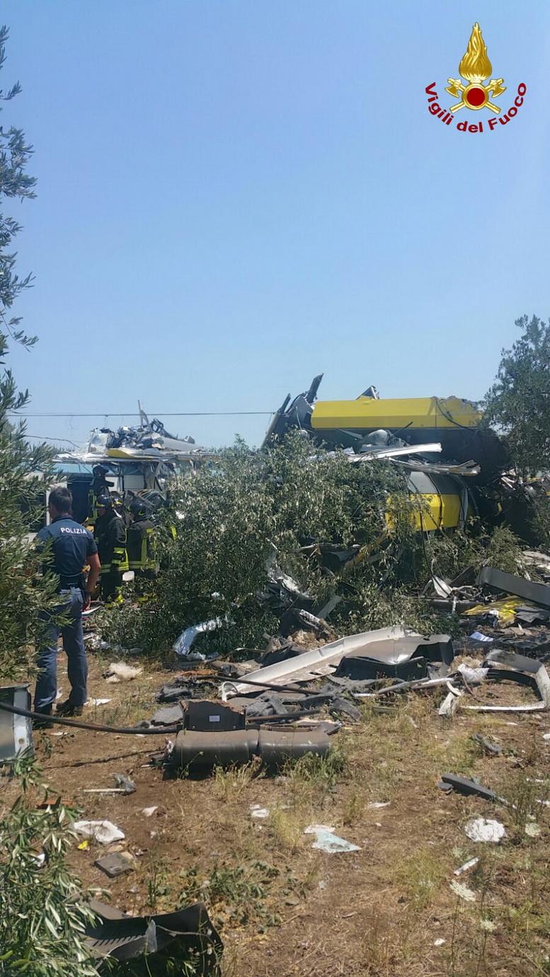 Лобове зіткнення потягів було настільки сильним, що уламки потягів порозліталися в полі між оливковими деревами на десятки метрів. В одному з поїздів уцілів лише останній вагон, в іншому – два.