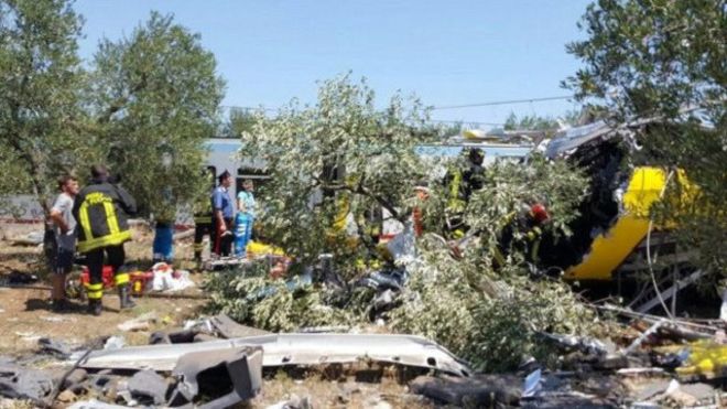 На місці аварії потягів на півдні Італії тривають рятувальні роботи. Кількість жертв зросла до 23-х людей, ще близько 50 людей були поранені, - повідомляє BBC Україна.