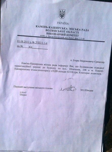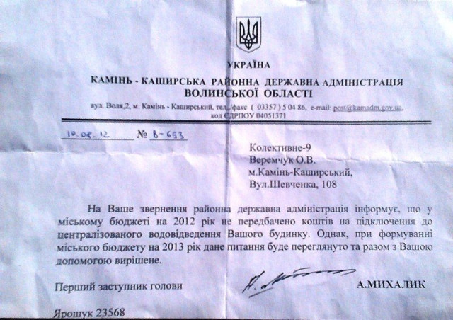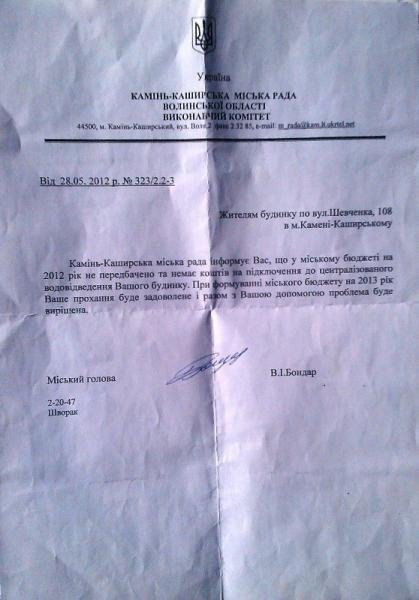Що там Камінь-Каширський. От у Луцьку на проспекті Волі 70, майже поруч з облрадою, стоїть триповерховий будинок взагалі без води та без каналізації. Люди по нужді ходять на вулицю у напіврзвалений дерев'яний туалет. А влада затуляє собі очі, щоб не бачити бідкання 12 сімей, які там проживають.
