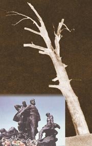 Обрамивши дуб чорним базальтом, ті, хто відродив Кортеліси з попелища, увіковічили його. На металевій плиті викарбували слова волинського поета Олександра Богачука з його поеми «Стогін землі»: