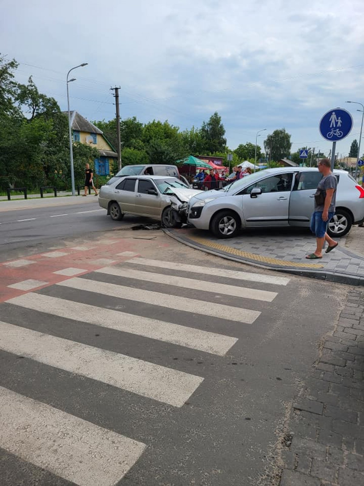 Знесло на тротуар: у Шацьку зіткнулися два авто. Фото